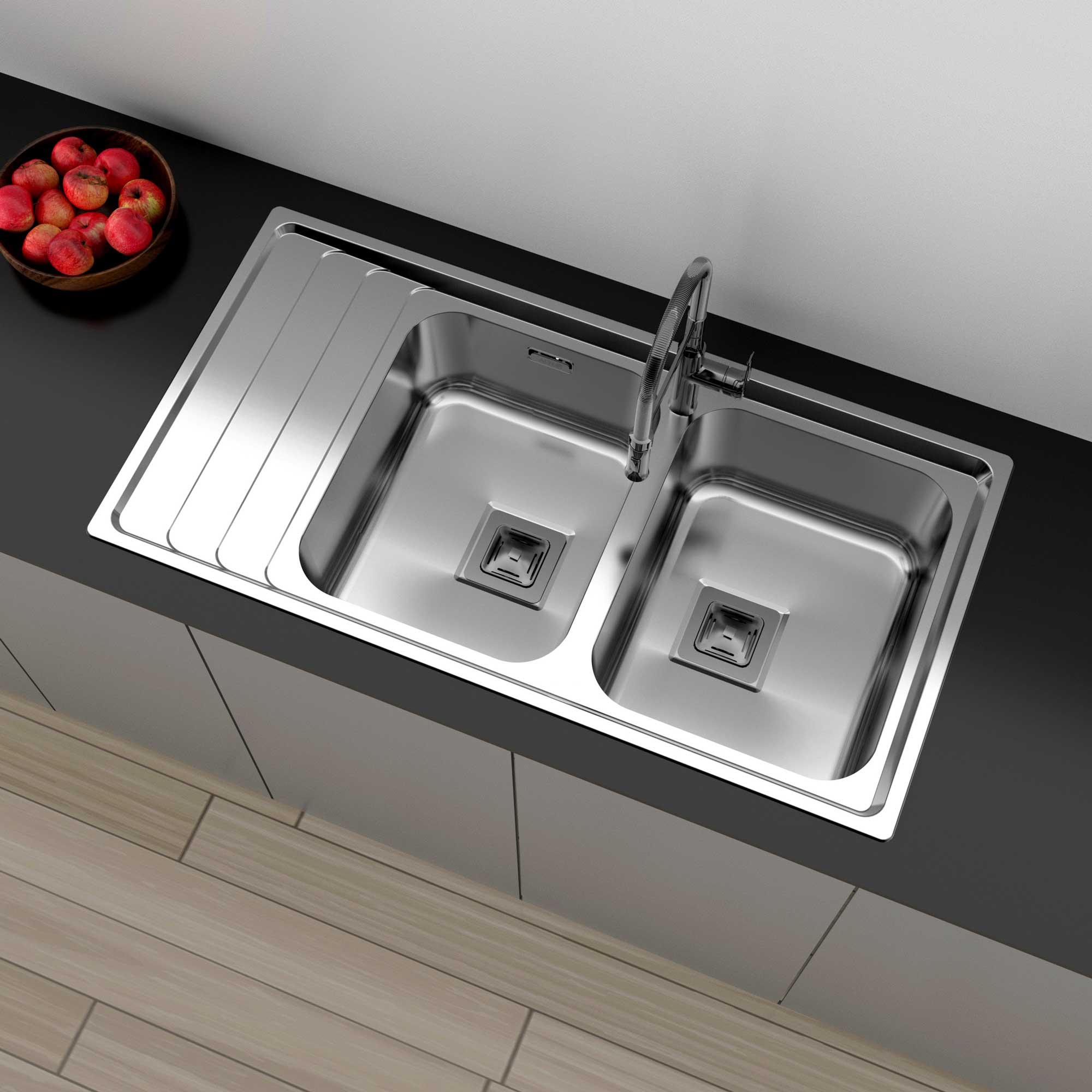 دو لگن جادار امکان شستشوی همزمان ظروف مختلف را فراهم کرده و مدل لگن راست (R)، کار با سینک را برای افراد راستدست آسانتر میکند. این طراحی نهتنها از نظر زیباییشناسی بینقص است، بلکه کاربردی و راحت نیز میباشد.