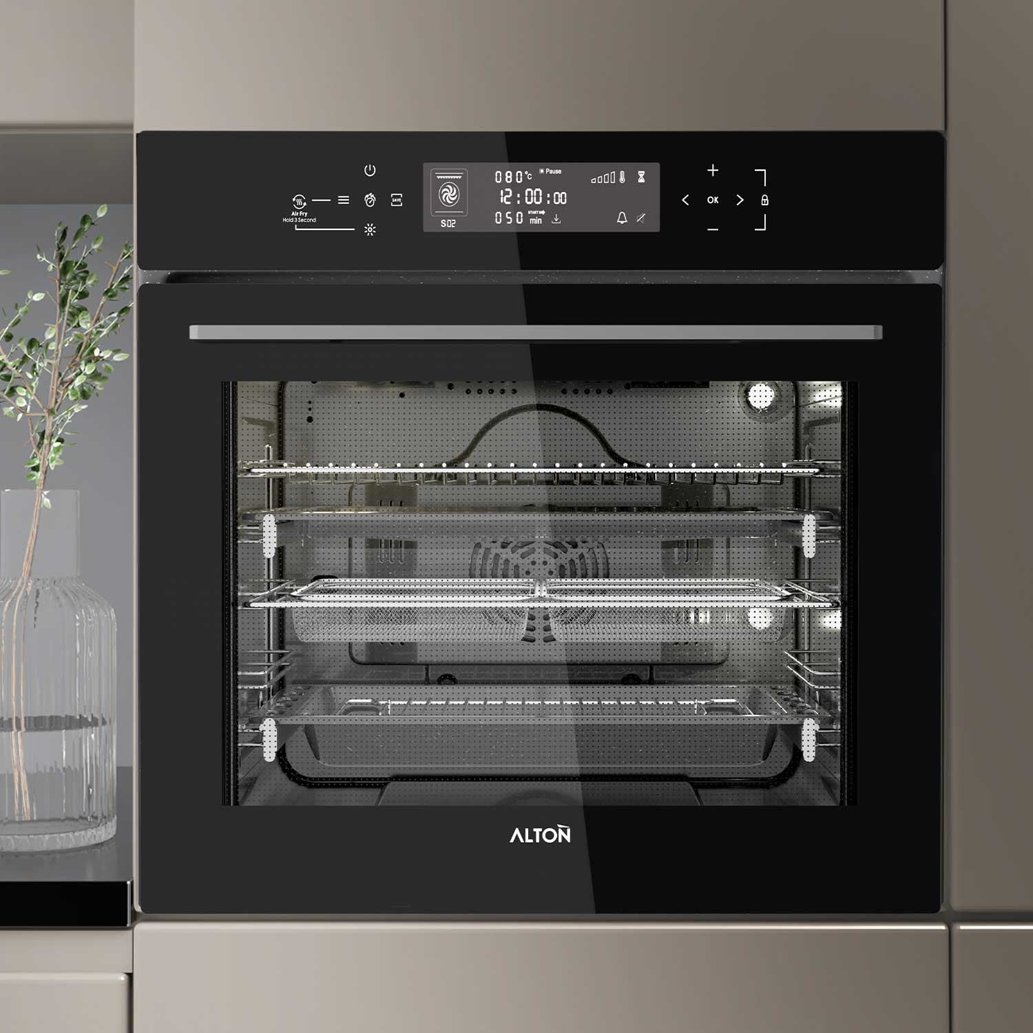 آلتون همواره بر ایمنی و راحتی استفاده از محصولات خود تأکید دارد. این فر دارای قفل کودک، ایمنی خودکار و لولای آرامبند است که از بستهشدن ناگهانی درب جلوگیری کرده و خطرات احتمالی را به حداقل میرساند. همچنین، درب چهارجداره جداشونده قابل شستشو به شما امکان میدهد بدون نگرانی از جمع شدن چربی، درب فر را بهراحتی تمیز کنید.