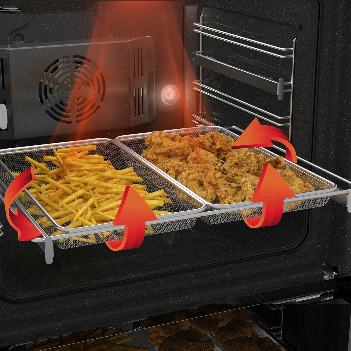 یکی از ویژگیهای مهم فر توکار V۳۱۰B، وجود فن گردش هوای گرم (کانوکشن) است. این فناوری، هوای داغ را بهصورت یکنواخت در سراسر محفظه فر پخش میکند. نتیجه آن، پخت یکنواخت و کامل غذا است.