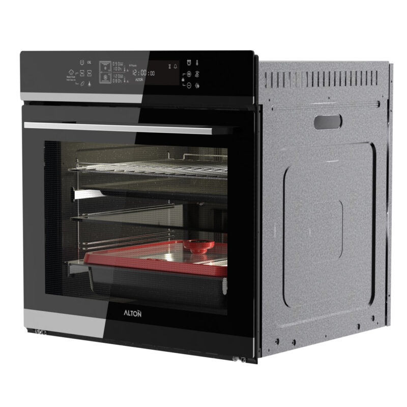 آلتون با شعار “فن و هنر آشپزخانه”، فناوریهای پیشرفتهای را در فر توکار V۵۰۰TB به کار گرفته است. این محصول کاملاً برقی است و با ولتاژ ۲۲۰ ولت کار میکند. صفحه نمایش TFT با رابط کاربری LCD نگاتیو، تمامی اطلاعات مورد نیاز را به شما نشان میدهد و تنظیمات فر را آسان و دلپذیر میکند. علاوه بر این، لولای آرامبند درب فر، کار با آن را ایمنتر و راحتتر میکند.