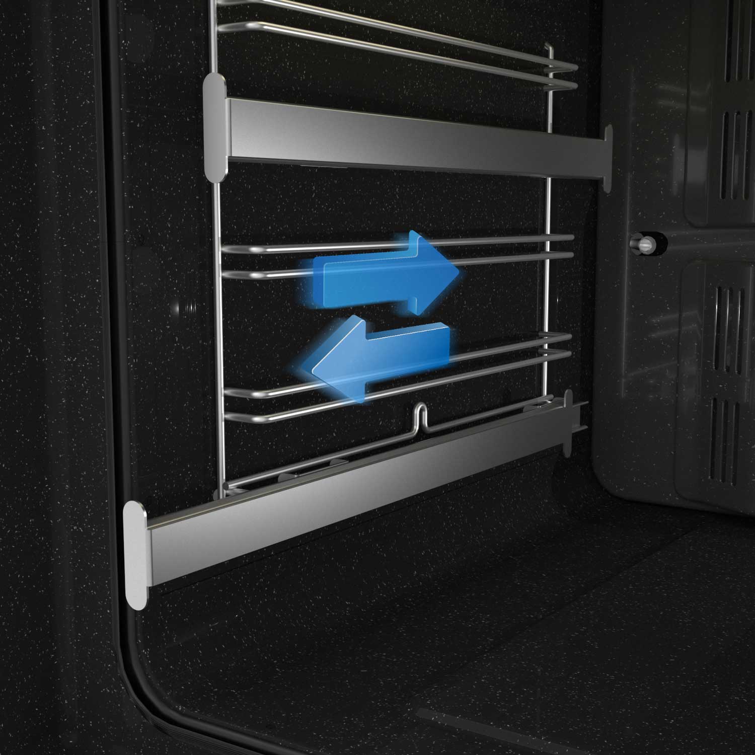 فر V550TG دارای ۴ عدد ریل تلسکوپی است که بیرون آوردن و جابهجایی سینیها را بسیار راحت و ایمن میسازد. این ریلها باعث میشوند حتی ظروف سنگین نیز بدون زحمت و خطر از داخل فر خارج شوند. همچنین وجود ۲ عدد سینی عمیق و کمعمق به شما امکان میدهد تا همزمان انواع غذاها را بپزید و آشپزی خود را سرعت ببخشید.