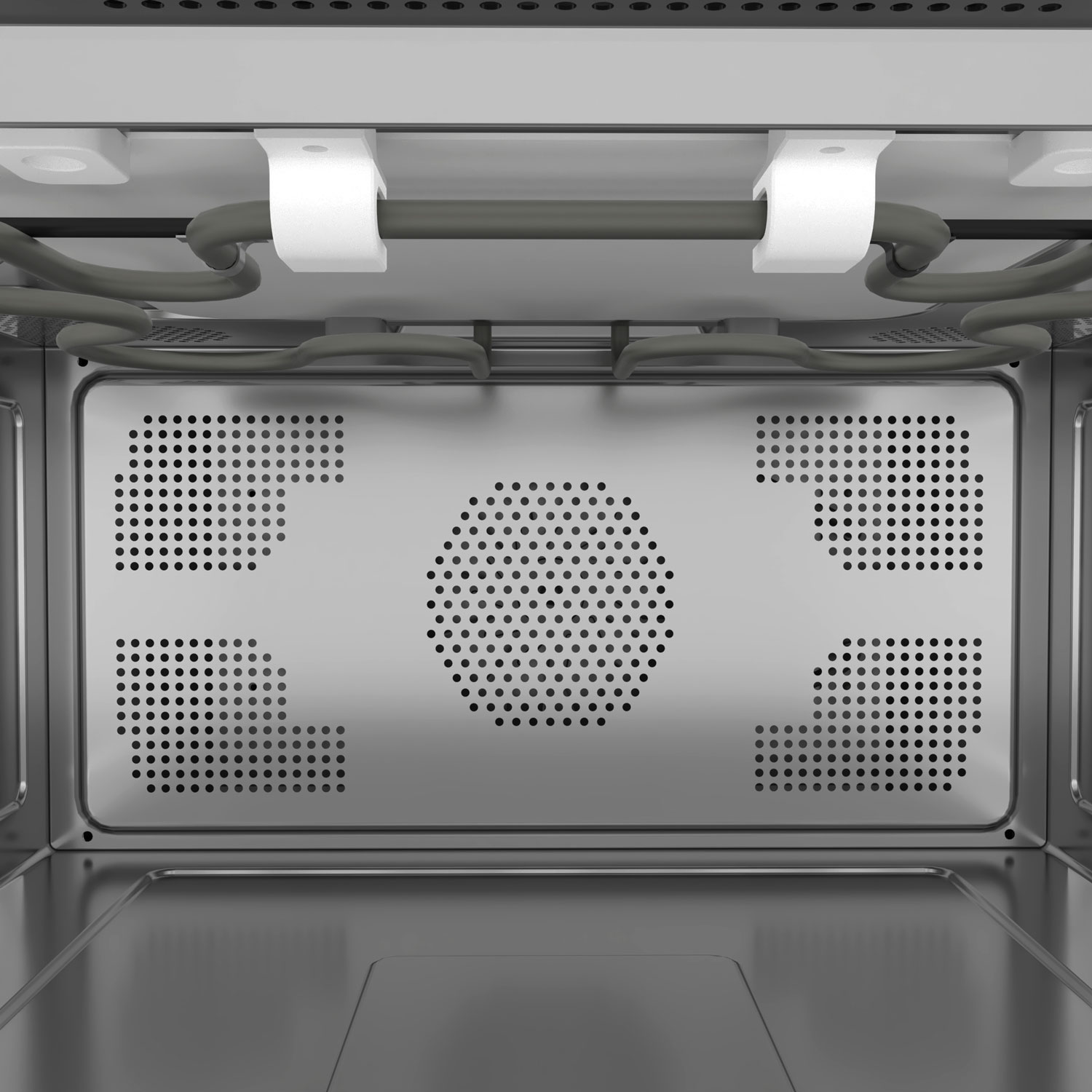 با سه نوع پخت ترکیبی و فن کانوکشن، گرما بهصورت یکنواخت در تمام نقاط غذا پخش میشود و نتیجهی کار، غذایی کاملاً مغزپخت و ترد خواهد بود. از پخت کیک و پیتزا گرفته تا گریل مرغ و یخزدایی گوشت، همه چیز در چند دقیقه انجام میشود.