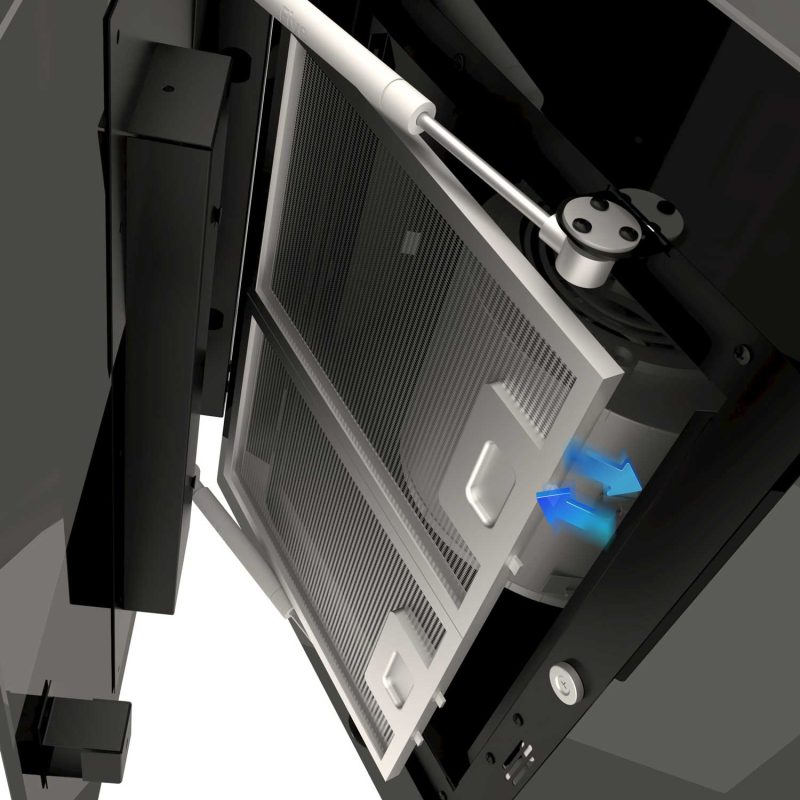 نگهداری و تمیز کردن هود یکی از دغدغههای اصلی کاربران است. این مدل دارای فیلتر آلومینیومی سهلایهی قابل شستشو است که بهراحتی جدا شده و تمیز میشود. این ویژگی باعث افزایش عمر مفید هود شده و از مسدود شدن مسیر مکش جلوگیری میکند.