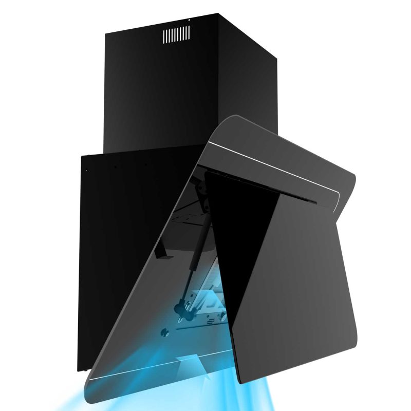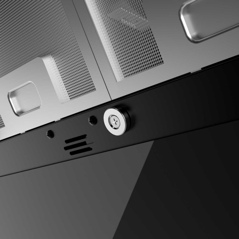 هود H۳۱۲ با عرض ۹۰ سانتیمتر، رنگ مشکی براق و بدنهای از جنس شیشه سکوریت مقاوم، جلوهای شیک و لوکس به آشپزخانهی شما میبخشد. طراحی مورب این هود علاوه بر زیبایی، از برخورد سر با دستگاه جلوگیری کرده و فضای بیشتری را برای کار در آشپزخانه فراهم میکند.