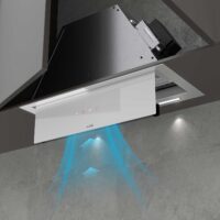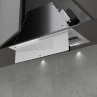 هود H۶۰۰WN به گونهای طراحی شده که در دل کابینت مخفی میشود و نمای آشپزخانه را بدون هیچگونه شلوغی و نامرتبی حفظ میکند. رنگ سفید، پنل شیشهای و فریم فلزی این هود، زیبایی و سادگی را در کنار هم قرار داده است تا با ترندهای روز دکوراسیون داخلی همخوانی داشته باشد.