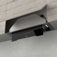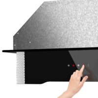 هود H900B با عرض ۹۰ سانتیمتری خود، بهراحتی روی اجاقگازهای استاندارد نصب شده و طراحی آن بهگونهای است که درون کابینت مخفی میشود. این ویژگی باعث حفظ یکپارچگی در طراحی آشپزخانه شده و فضای مدرنتری را ایجاد میکند. شیشه اپتیک مشکی استفادهشده در این مدل، در کنار فریم فلزی مقاوم، جلوهای خاص و لوکس به آشپزخانه شما میبخشد.